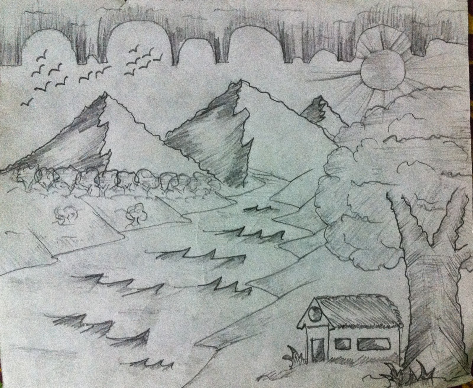 Scenery Drawing For Class 6 Scenery