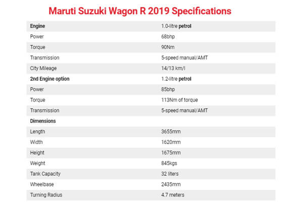 new wagon r specification 2019